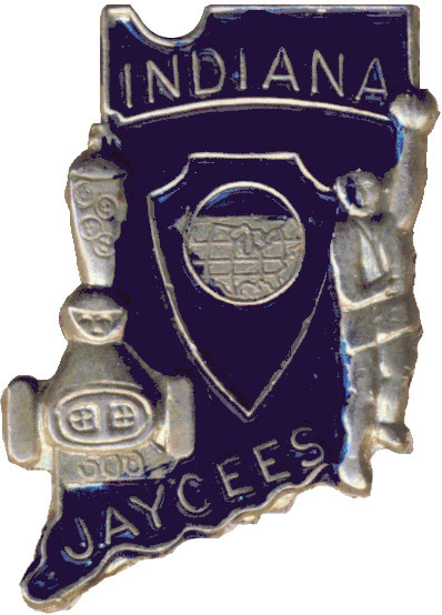 | IN7907 | IN | 1979 | Senate | White-Medium-Enamel | "HOOSIER JCI SENATE" OUTLINE W/RED RACE CAR & RSD BLUE "UNITED STATES JAYCEES" SHIELD | Normal | Gold Metal |